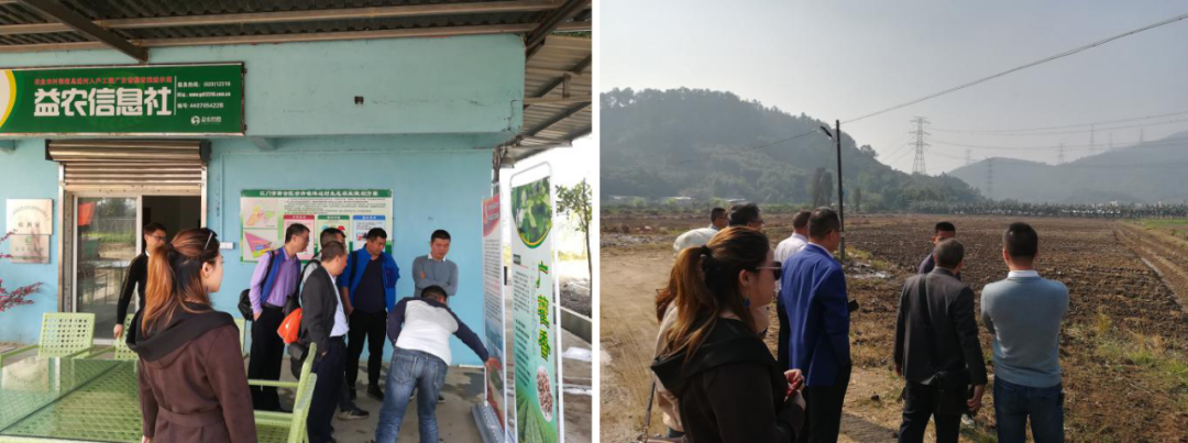 △走访新会陈皮村,调研新会特色——“陈皮”的产业园区运营管理在古井镇洋边生态农场,调研组向村干部了解地方特色产业的市场价值与发展潜能,并就如何助力农村经济振兴发展等问题展开讨论。