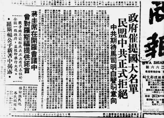 《华商报》刊登民盟与中共一起拒绝参加伪“国大”的报道