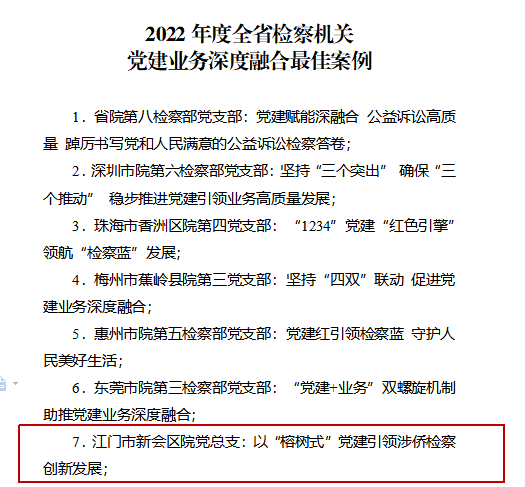 喜报!新会检察院“以‘榕树式’党建引领涉侨检察创新发展”案例被评为全省检察机关党建业务深度融合最佳案例